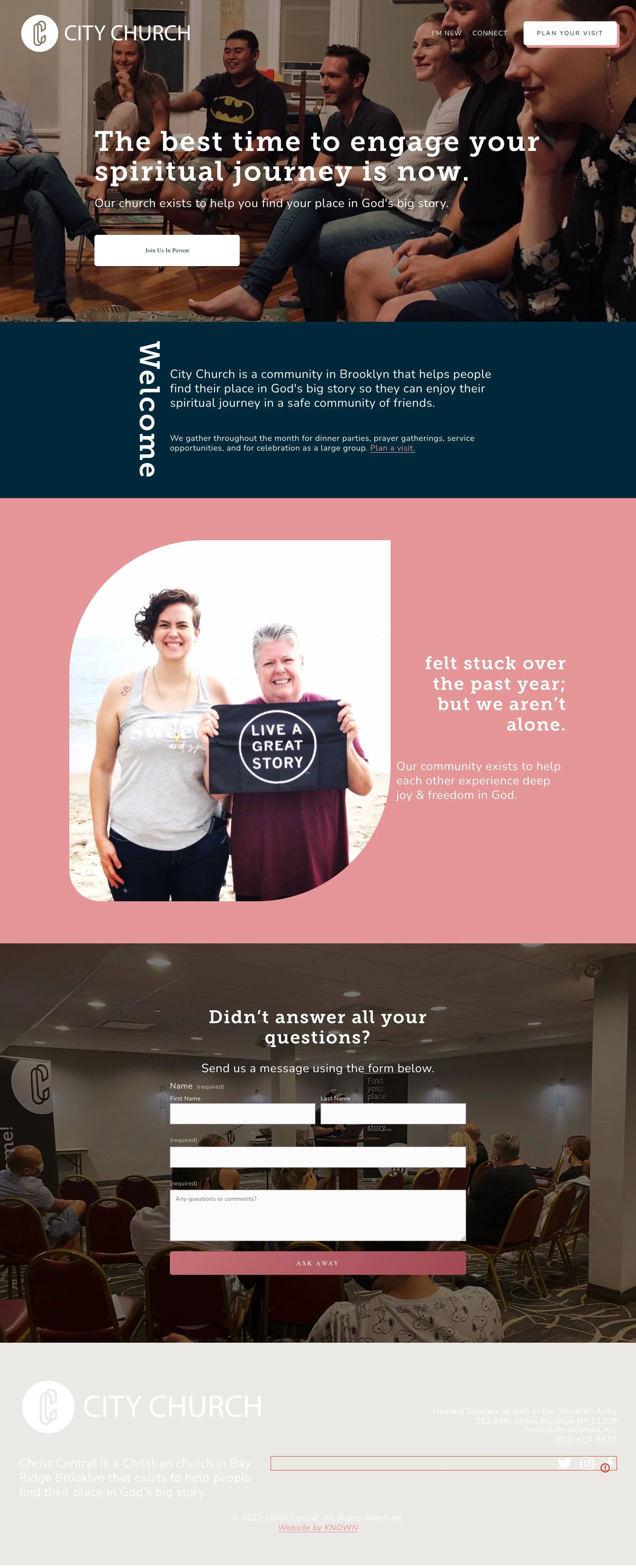 City is a modern template designed specifically for more urban churches. Designed specifically for Squarespace 7.1 (Fluid Engine), the high contrast typography and bright color palette appeal to a younger, diverse audience while large image slider lets you instantly communicate your identity. As always, the colors are customizable for your church.
