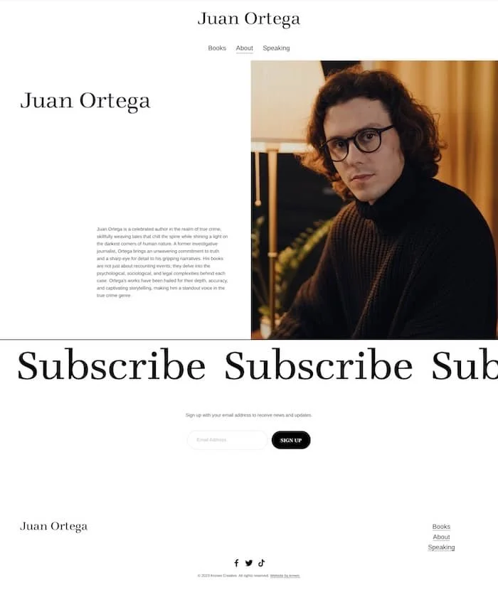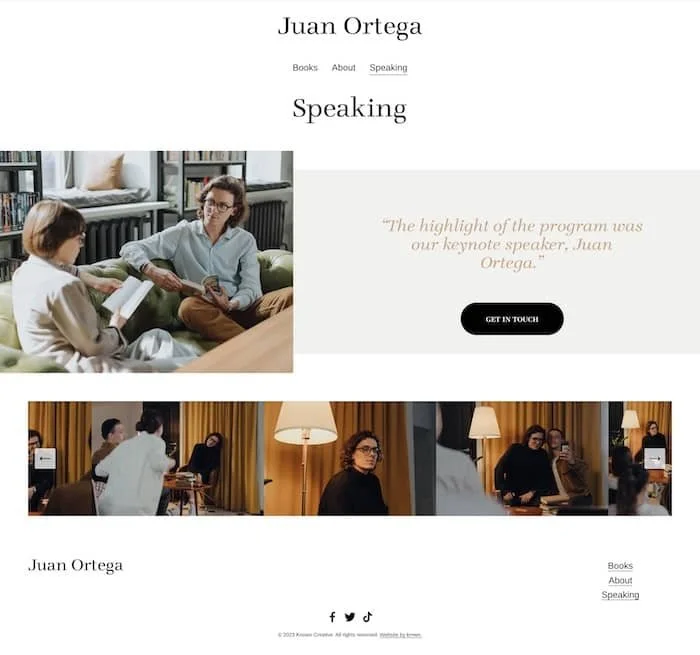The Juan Ortega template is a sophisticated theme that is great for authors and therapists. Built with Squarespace 7.1 (Fluid Engine), the humanized feel allows you to connect well with your audience and make a great first impression.