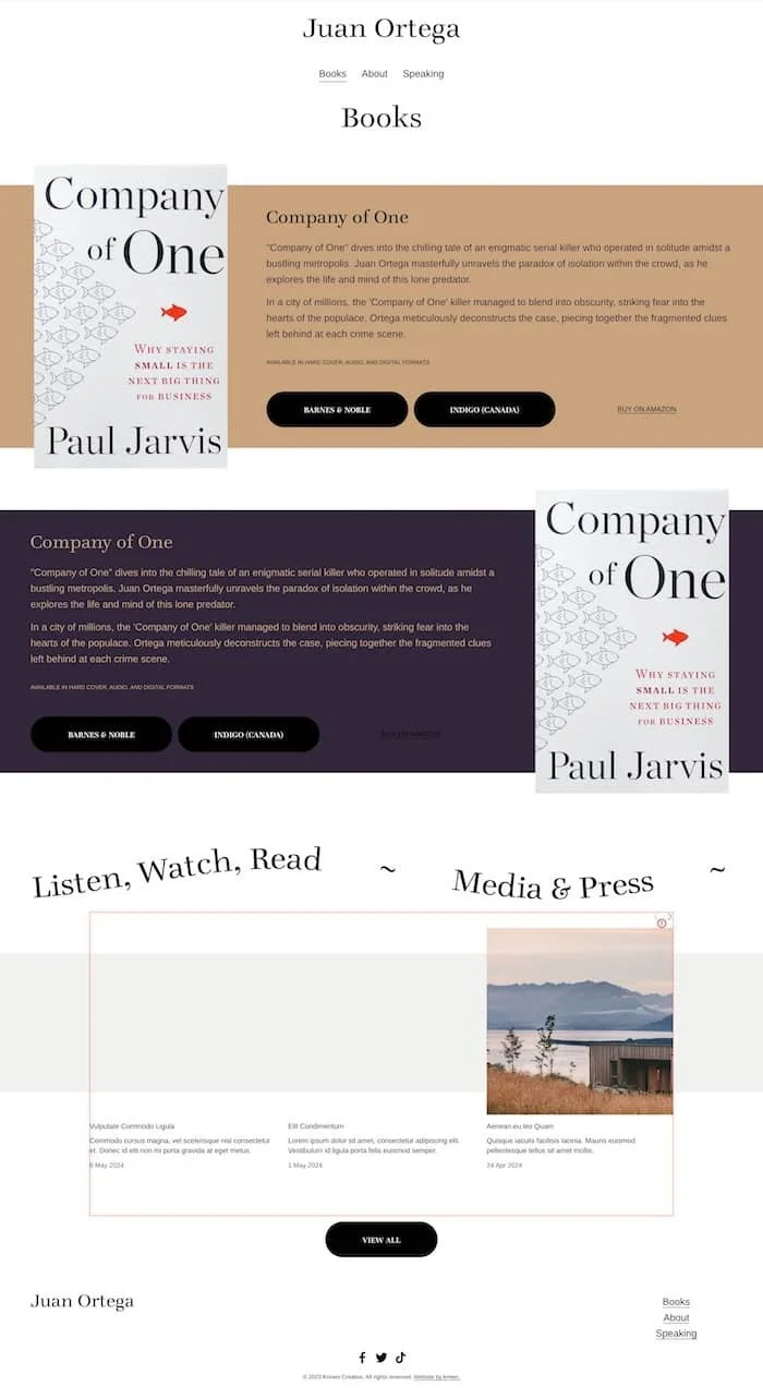 This site was designed specifically for authors, so it includes essential pages for any author’s website, including the pages below.