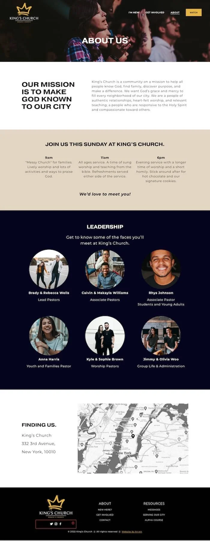 The Kings Church theme is a young, urban, energetic theme designed specifically for churches. Built with Squarespace 7.1 (Fluid Engine), the images are large and youthful, and the hero video lets you instantly get your message across to visitors. As always, the colors are customizable for your church.